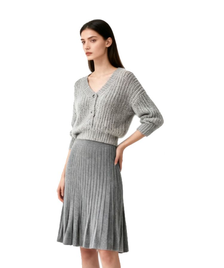 女装修身、宽松毛衣,针织连衣裙、半身裙,开衫外套、短款针织衫等