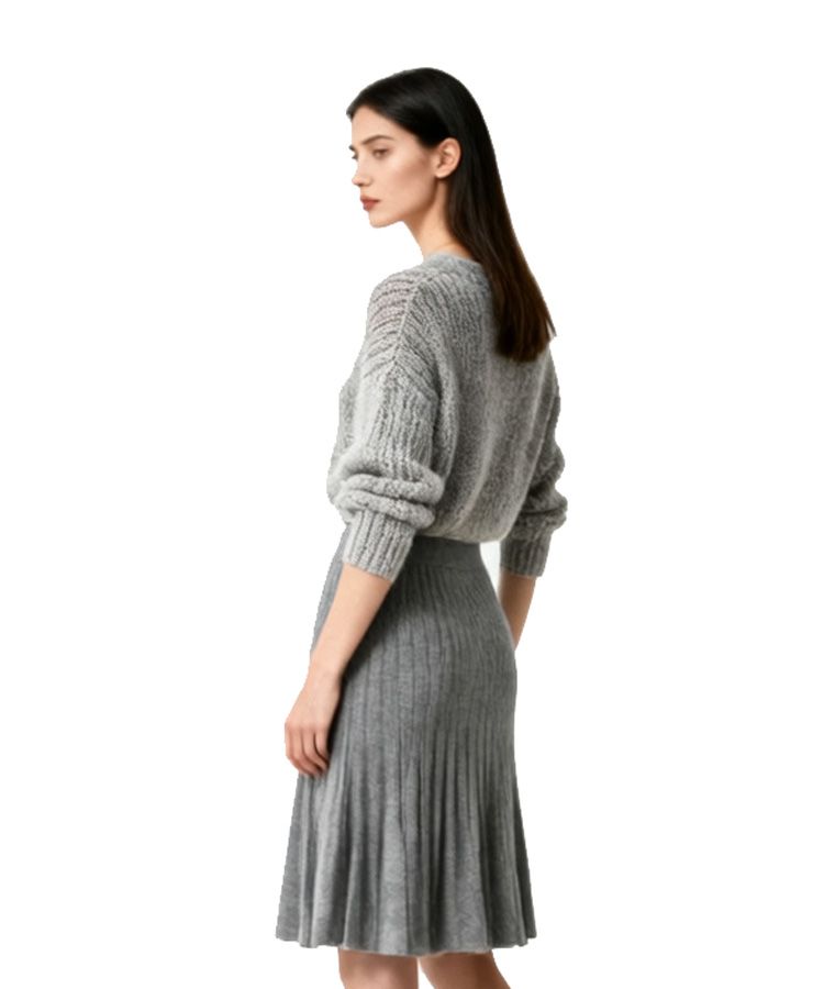 打褶针织半身裙