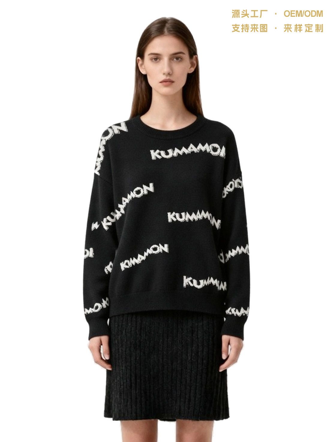 熊本熊字母情侣装宽松针织衫男女春秋款上衣 套头圆领卫衣 提花毛衣