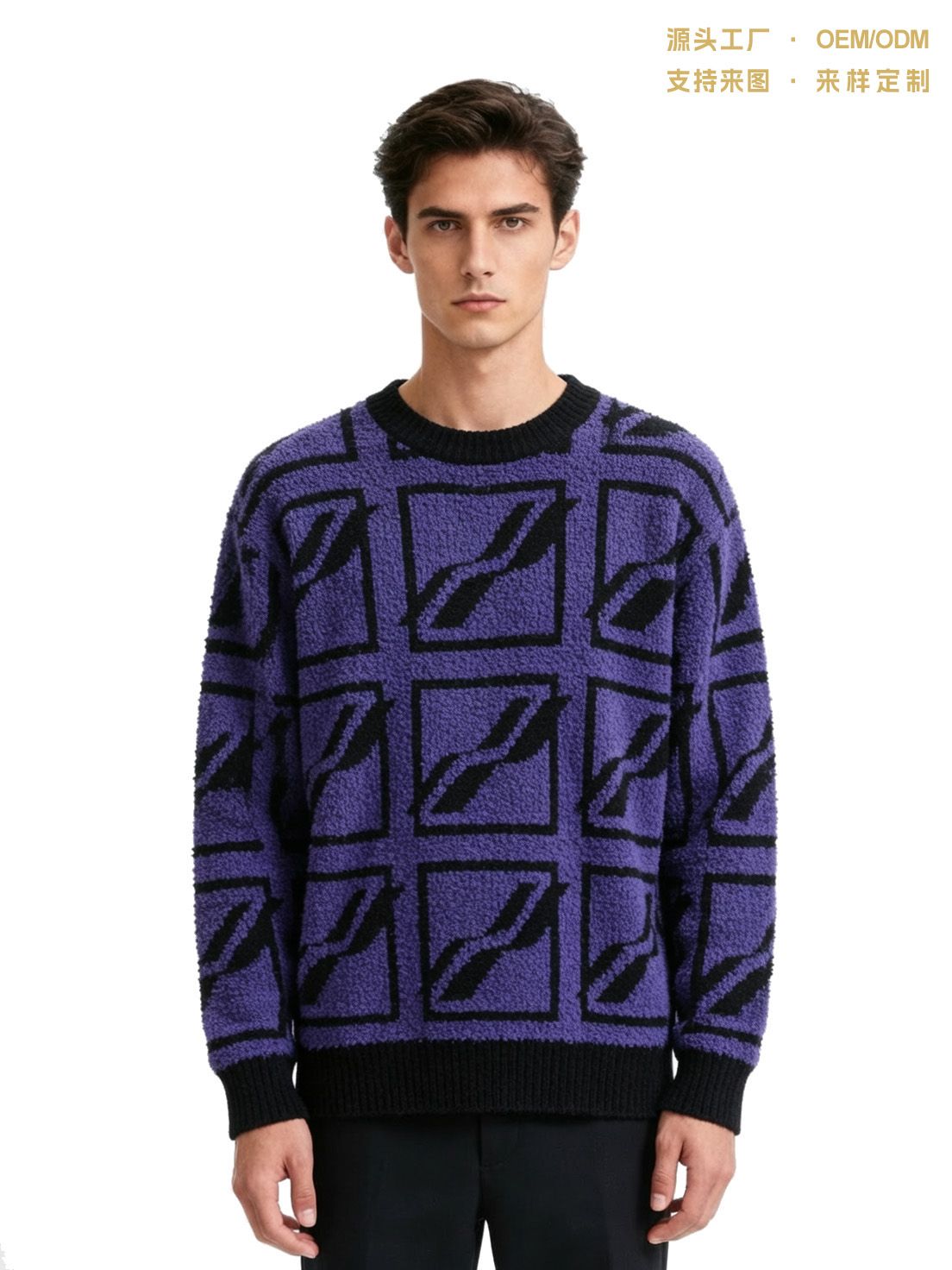 时尚羊毛毛巾绣提花针织衫 抽象艺术风高领毛衣定制针织毛衣工厂